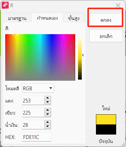ขั้นตอนที่ 5: เลือกสีที่คุณชอบ ผู้ใช้ยังสามารถเลือกสีโดยใช้รหัสฮีกซิมัลได้ หลังจากที่คุณเลือกสีแล้ว ให้คลิกที่ "ตกลง"