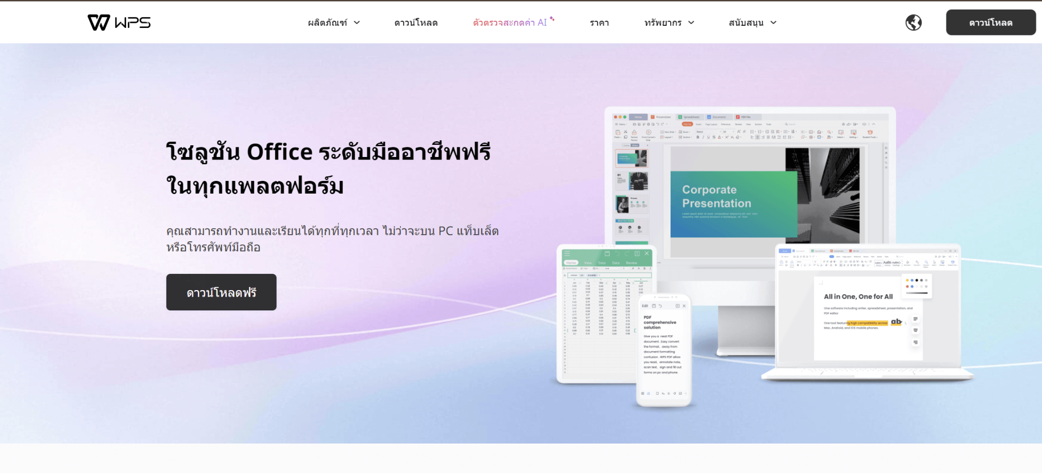 เข้าชมเว็บไซต์อย่างเป็นทางการของ WPS Office ที่ https://www.wps.com/th-TH/office/ และดาวน์โหลดเวอร์ชันที่เหมาะสมสำหรับระบบปฏิบัติการของคุณ (Windows หรือ Mac) ติดตั้งซอฟต์แวร์โดยการปฏิบัติตามคำแนะนำบนหน้าจอ.
