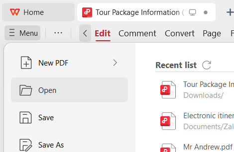 การใช้ WPS Office PDF Editor นั้นง่ายดายและไม่ต้องใช้ความเชี่ยวชาญด้านเทคนิค ทำตามขั้นตอนเหล่านี้เพื่อแก้ไข PDF ของคุณอย่างมีประสิทธิภาพ: