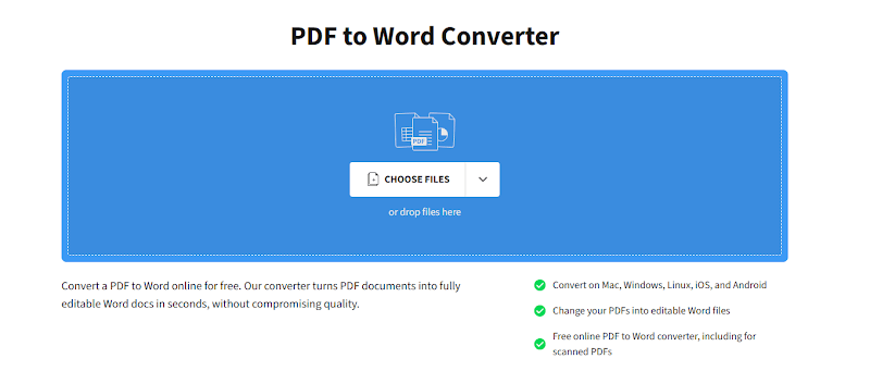 สมมติว่าคุณไม่ต้องการติดตั้งซอฟต์แวร์และต้องการการแปลงอย่างรวดเร็ว ในกรณีนั้น มีเครื่องมือออนไลน์หลายแห่งที่สามารถแปลงไฟล์ PDF เป็น Google Docs ได้ เครื่องมือแปลงไฟล์ออนไลน์ที่เป็นที่รู้จัก ได้แก่ PDF เป็น DOC, Smallpdf และ Zamzar แม้ว่าบริการเหล่านี้จะเสนอตัวเลือกฟรี แต่บางบริการอาจจำกัดขนาดไฟล์หรือจำนวนการแปลงต่อวัน