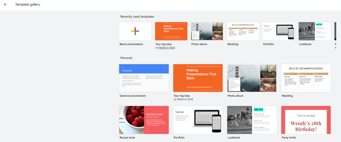 เทมเพลตหลากหลาย: Google Slides มีเทมเพลตหลากหลายให้เลือก ช่วยให้ผู้ใช้สามารถสร้างงานนำเสนอที่มีการจัดรูปแบบที่น่าสนใจและมีลักษณะมืออาชีพ