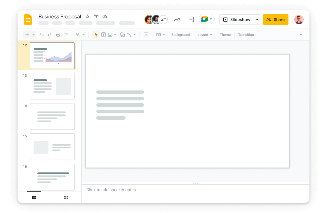 **เยี่ยม ! ตอนนี้คุณรู้เรื่องพื้นฐานในการใช้ Google Slides บนคอมพิวเตอร์แล้ว คุณสามารถสร้างงานนำเสนอที่น่าทึ่ง, เพิ่มรูปภาพ, และร่วมงานกับผู้อื่นได้ด้วย เราแนะนำให้ฝึกซ้อมมากๆ เพื่อที่คุณจะได้เป็นผู้ที่เก่งขึ้นไปไป ดังนั้นลองใช้ดูและสนุกกับการทำให้งานนำเสนอของคุณสว่างไสว! อยู่รอดูเทคนิคและเคล็ดลับเพิ่มเติมเพื่อทำให้งานนำเสนอของคุณโดดเด่นขึ้น!