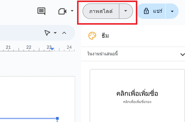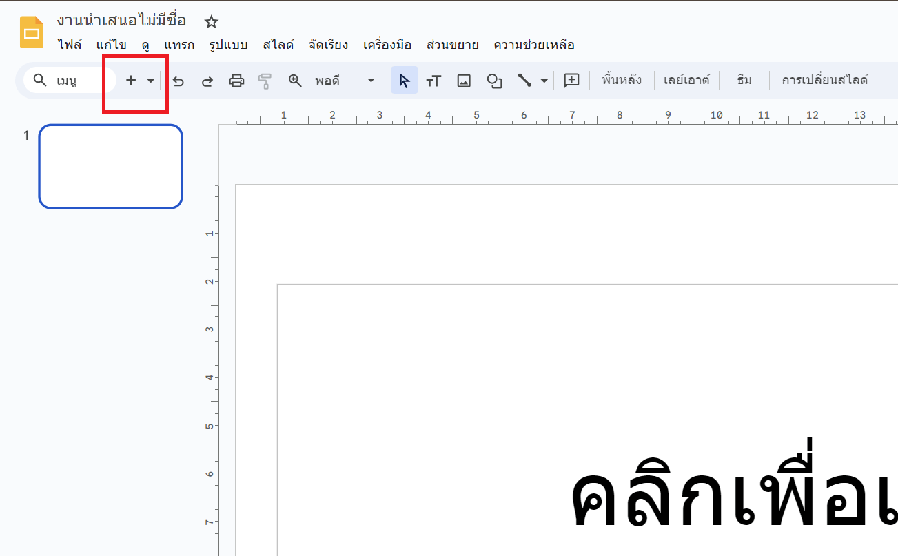 ขั้นตอนที่ 4 เพิ่ม Slide: คลิกที่ปุ่ม "+" ที่แถบด้านซ้ายเพื่อเพิ่ม Slide ใหม่