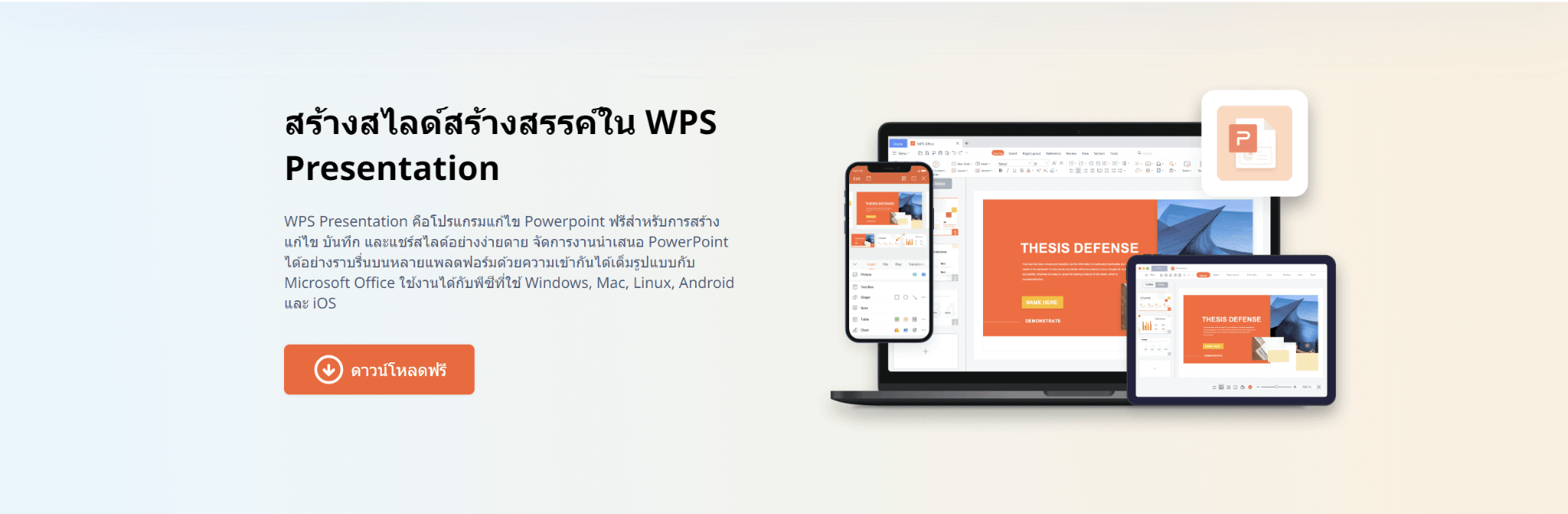 สนับสนุนหลายแพลตฟอร์ม: WPS Office สามารถใช้ได้กับระบบปฏิบัติการต่าง ๆ รวมถึง Windows, macOS, Linux, Android, และ iOS