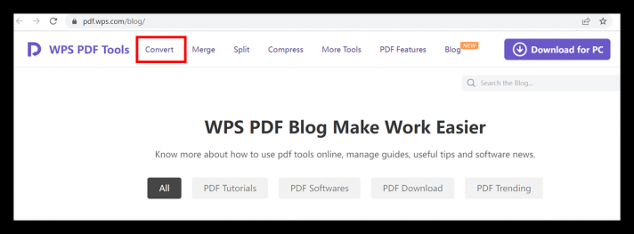 ขั้นตอนที่ 1: เข้าสู่เว็บไซต์ WPS Office สำหรับ PDF โดยไปที่ลิงก์ https://pdf.wps.com/blog/