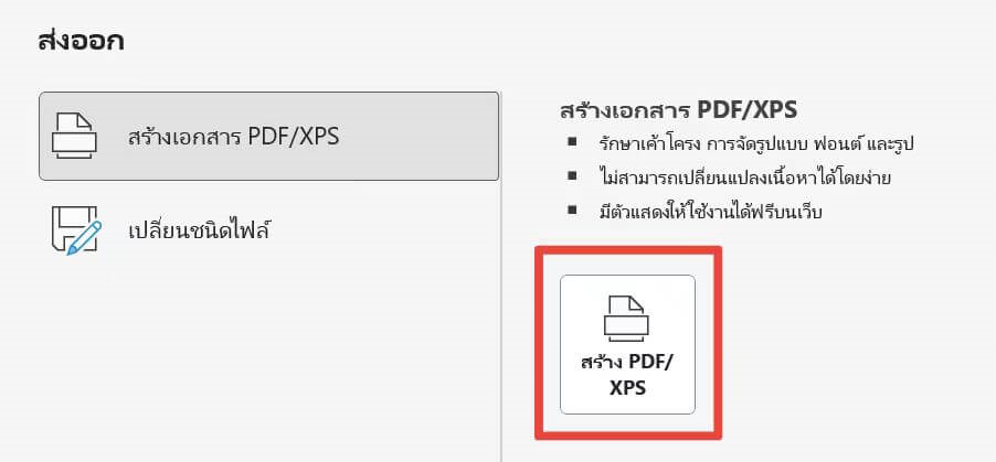 ขั้นตอนที่ 4: คลิกที่ปุ่ม Create PDF/XPS